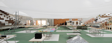 arquitecto suizo Christian Kerez construyó una de las pocas formas expresivas, geométricas en la Bienal, una nube blanca de fibra de cemento pulverizado que constituye una invitación a meterse en la cavidad interior del espacio. Rodeada de pabellones que interpretan el tema de Aravena, literalmente, la exposición suiza dejó a algunos espectadores confundidos.Muchos se preguntaron durante la vista preliminar, "¿Cómo encaja su formalismo en la tendencia favorable a la conciencia social?"
