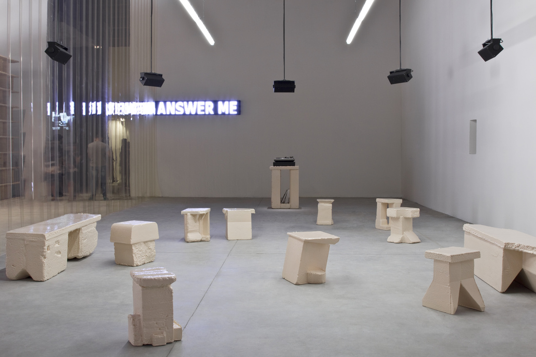 Vista de la instalación de "Christian Kerez, espacio en el fondo," Pabellón de Suiza, 15 Exposición Internacional de Arquitectura - La Bienal de Venecia de 2016. Foto por Oliver Dubuis, cortesía del pabellón suizo.