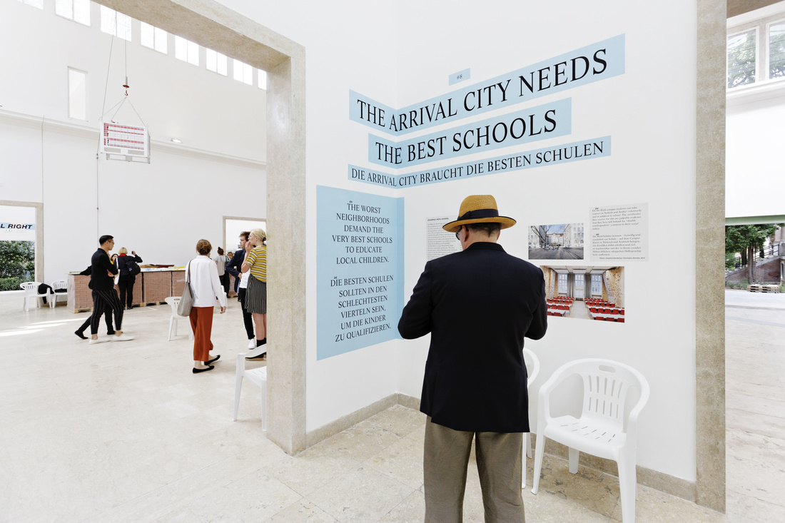 Curada por un equipo de la Deutsches Architekturmuseum, el pabellón alemán hace una declaración concertada en favor de la acogida de los inmigrantes y los refugiados sirios, turcos, y por otra parte, al país, con una exposición que documenta la forma en ciudades como Berlín, Offenbach am Main, y Frankfurt han adaptado arquitectónicamente y culturalmente a la reciente afluencia de inmigrantes. Las fotografías de las familias recién llegadas se alinean en las paredes del pabellón, con relatos acerca de su origen, la vivienda, y vive en Alemania muestran junto a los mapas y gráficos de datos estadísticos.