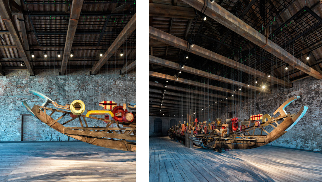 La República de Venecia y el Imperio Otomano fueron rivales militares y comerciales socios comerciales desde hace casi medio milenio, y el pabellón de Turquía hace referencia a sus afinidades por el transporte de las reliquias de un astillero de Estambul antiguo al Arsenal de la Bienal. Objetos y detritus que se encuentran en el antiguo barrio de la construcción naval se han formado en un conjunto en forma de barco a la vista en Venecia, conocida como una bastarda por los curadores Feride Cicekoglu, Mehmet Kutukcuoglu, y Ertug Ucar. instalación escultórica del pabellón parece especialmente impresionante en medio de la maraña de carteles y tablones de anuncios en los pabellones cercanos, y una inspección más detallada de cada elemento individual revela una herencia Panmediterránea igualmente en casa en Italia y Turquía.